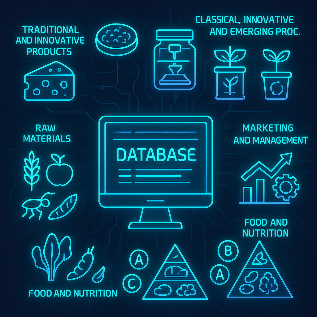 The specific objectives of the project are the development of educational databases for traditional and innovative products, classical, innovative and emerging processes (including sustainable processes), innovation, traditional and sustainable raw materials, marketing and management, food and nutrition. The databases will enable the users of the system to get acquainted with the main characteristics of the raw materials, processes, elements of the technology, as well as the products that are developed by their application. Here you will find information on more than 150 different products, processes, raw materials, and innovations that will support your work on the case study |